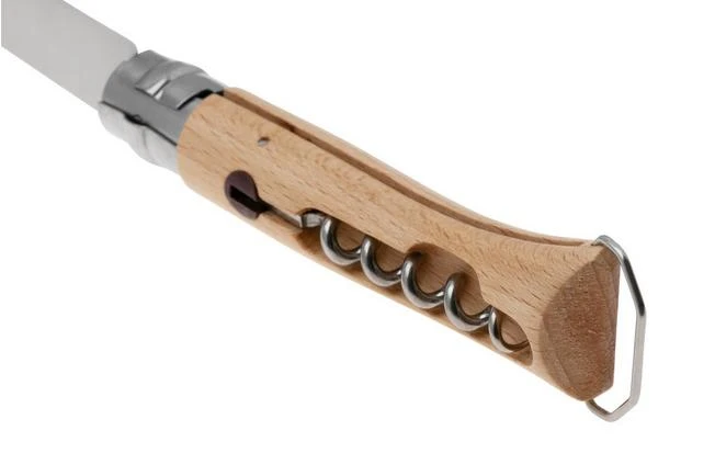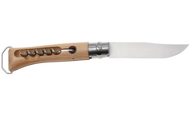The Opinel Pocket knife with wooden handle. Originally created by Joseph Opinel in 1890 for use by farmers. The Opinel Pocket knife is a famous, yet very cheap pocket knife for everyday use. You can get very small versions or fairly large ones. There is only one thing for French farmers that is even more important than a good pocket knife: a corkscrew. Therefore Opinel has equipped this pocket knife with an excellent corkscrew. A ly audible click informs you if this is entirely opened or closed.